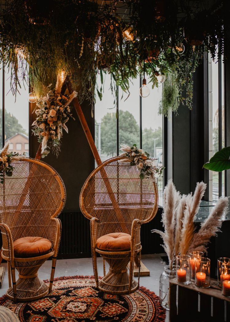Deze twee mooie pauwenstoelen zijn te huur voor €60 excl. bloemen. zithoogte 39cmbreedte 87cm hoogte 129cm